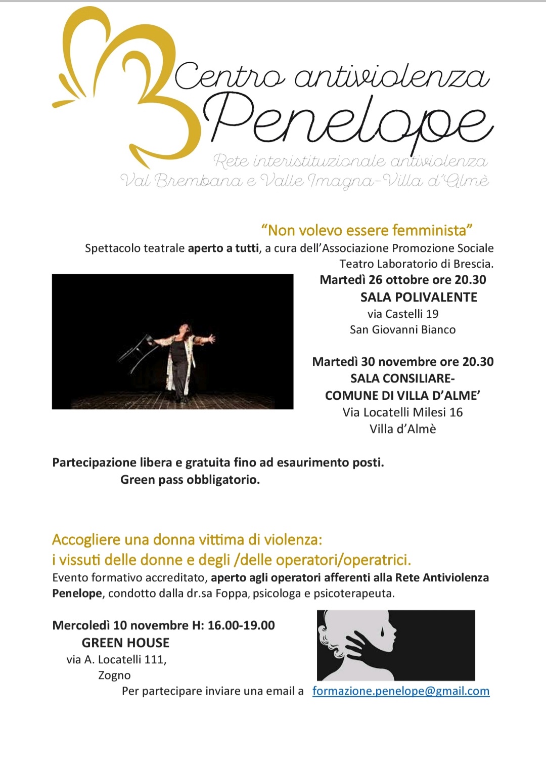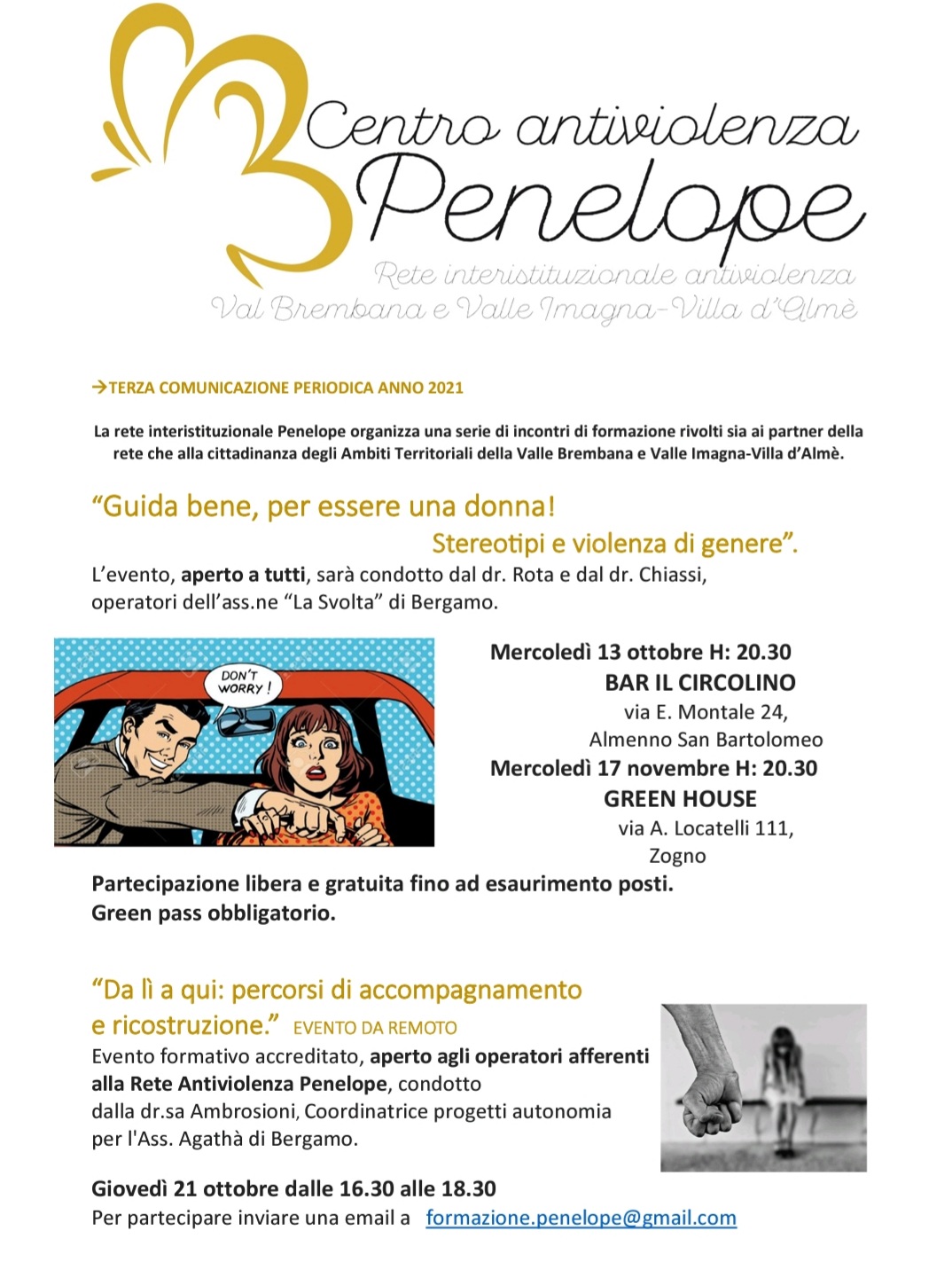 La rete istituzionale Penelope organizza una serie di incontri di formaizone rivolti sia ai partner della rete che alla cittadinanza degli Ambiti Territoriali della Valle Brembana e Valle Imagna-Villa d'Almè